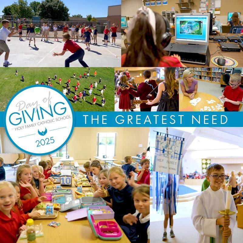 Holy Family's Giving Day brings together alumni, students, parents, friends, neighbors, faculty and staff during a 24 hour online fundraising event. This event supports our school, programs, and causes that are important to us.